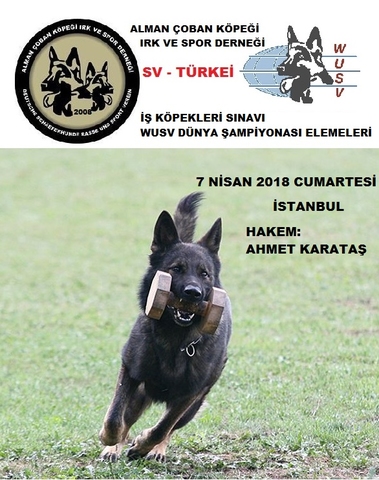 7 NİSAN CUMARTESİ İSTANBULDA İŞ KÖPEKLERİ SINAVINDA DERNEK BAŞKANIMIZ SAYIN AHMET KARATAŞ HAKEMLİK YAPMIŞTIR.AYNI ZAMANDA WUSV İŞ KÖPEKLERİ DÜNYA ŞAMPİYONASI TÜRKİYE ELEMELERİ SONUÇLANMIŞTIR.