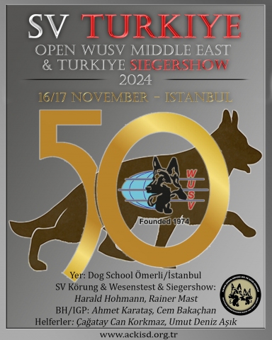 WUSV un 50. yıldönümünü İstanbul'da 16-17 Kasım 2024 tarihinde Türkiye ve Orta Doğu'nun en seçkin Alman Çoban Köpeklerinin katılacağı organizasyonumuzla kutlayalım!