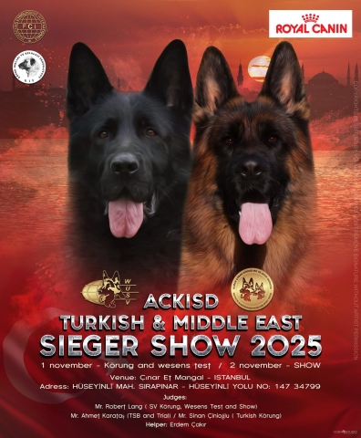 WUSV AÇIK ORTA DOĞU VE TÜRKİYE ŞAMPİYONASI , HAKEM ROBERT LANG (TÜM GRUPLAR) ,AHMET KARATAŞ (TSB) , HELFER ERDEM ÇAKIR, SON KAYIT 20 EKİM 2025 , ÜCRET 1000,-TL